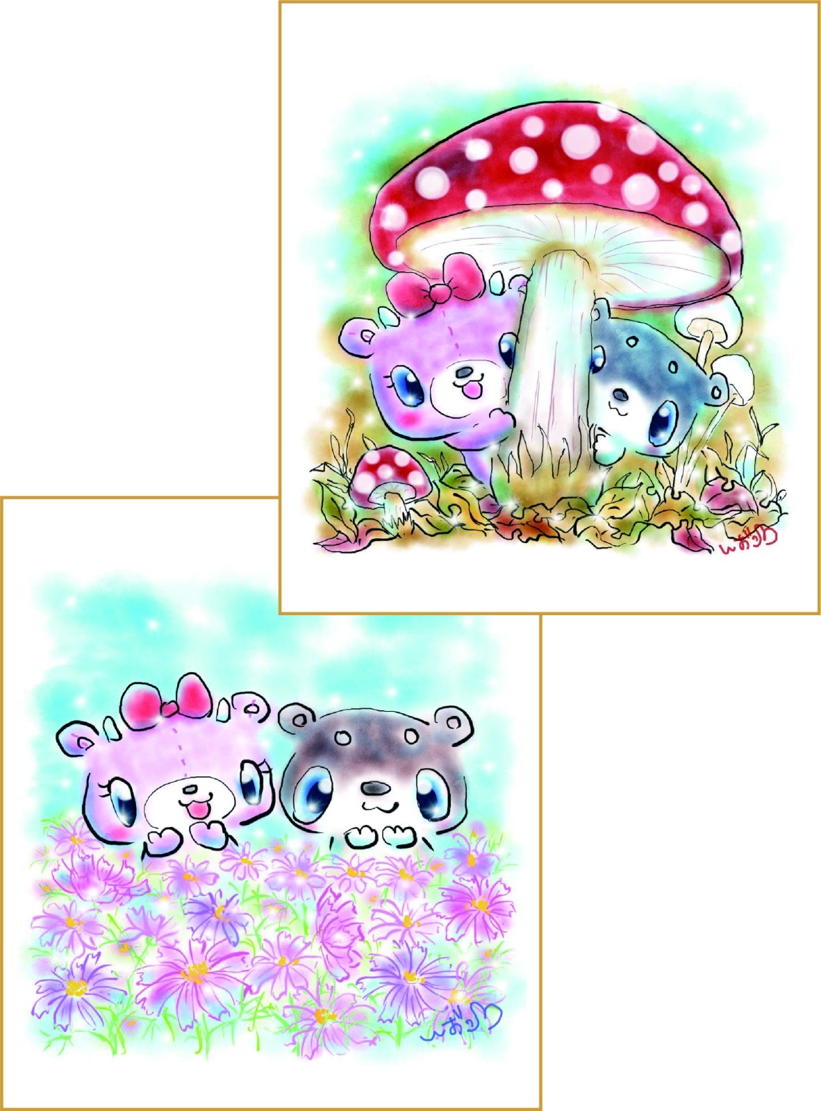 柴キャス応援ミニ色紙「しばっこあキノコのこ」「しばっこあコスモス」